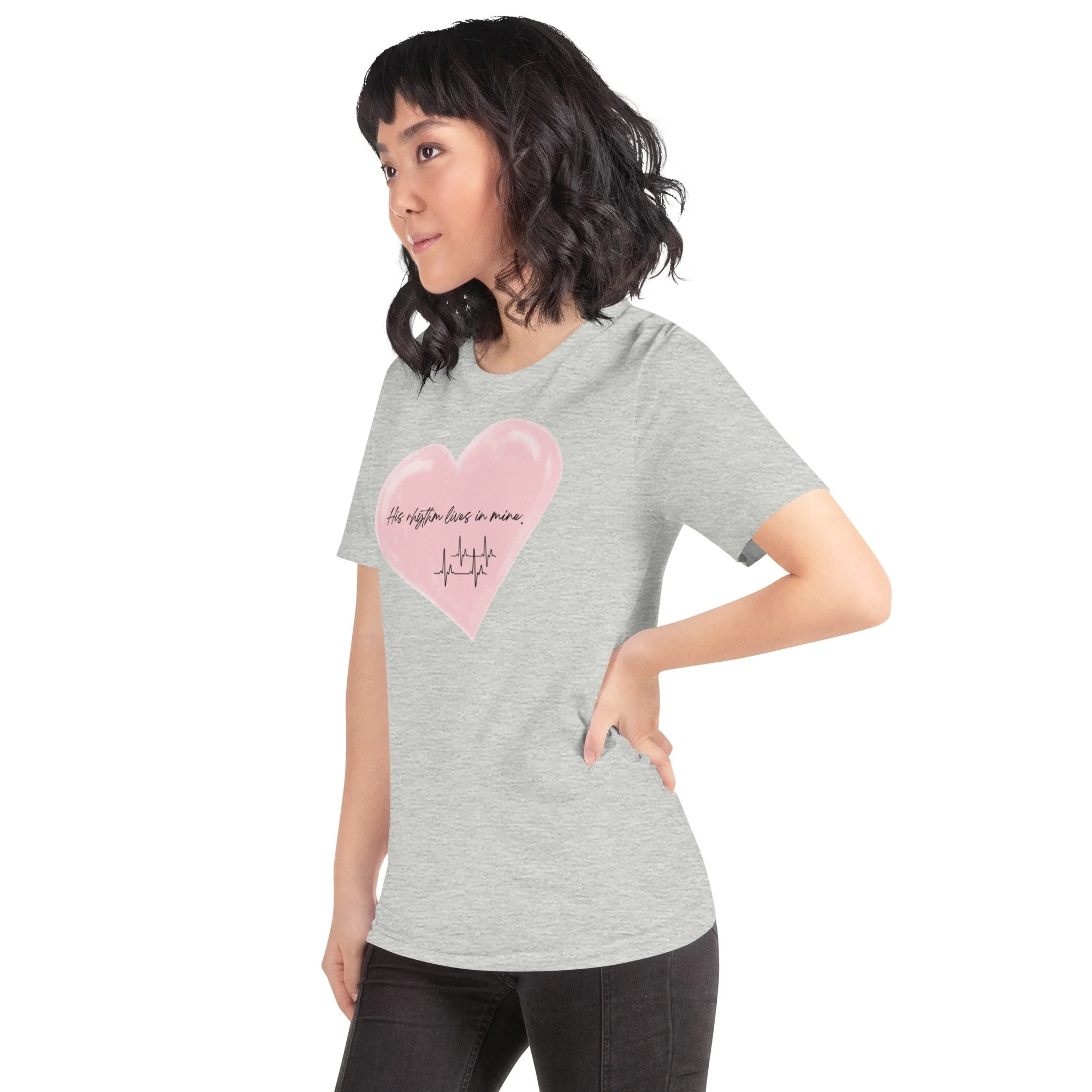 Designed for the mother whose love endures beyond time, the pink heart and heartbeat line symbolize the eternal connection between you and the child you carry in your spirit. The words “His rhythm lives in mine” echo what every grieving mother knows:
